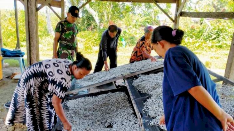 Ikan yang ukuran nya kecil itu tidak begitu laku di pasaran. Tetapi dengan kita olah menjadi ikan kering atau ikan teri, maka akan bisa meningkatkan harga jual di pasaran dan akan menambah income nelayan disini. Kalau dijual basah, harganya murah, makanya masyarakat lebih memilih untuk dikeringkan, terang Sertu Asril.