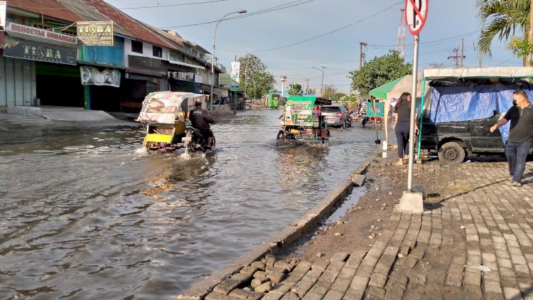 Naiknya air pasang ROB aktifitas warga terganggu,diantaranya saat mau pulang kerumah terpaksa berhenti melintas dan menunggu air kemabali surut.