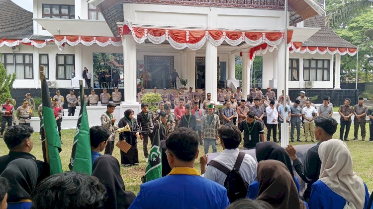 Tanah Datar — RedaksiDaerah.com — Aksi demonstrasi mahasiswa Himpunan Mahasiswa Islam (HMI) UIN Muhammad Yunus Batusangkar berlangsung di halaman kantor DPRD Kabupaten Tanah Datar, Senin (1/9). Dalam aksinya, mahasiswa membawa empat tuntutan utama yang langsung diterima oleh Ketua DPRD Tanah Datar, Anton Yondra, SE, MM, bersama seluruh fraksi yang hadir.
