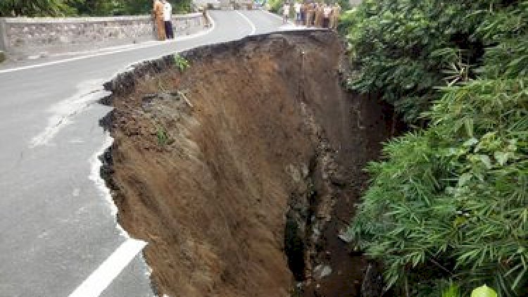 ”Informasi yang kami terima itu tanah urugan, artinya mau diaspal biar lebar itu urug, jadi diurug dulu baru diaspal. Kemungkinan karena curah hujan fondasinya kurang kuat,” kata Presasta.