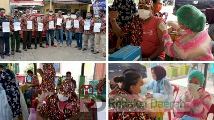 Andika Sihombing memimpin langsung anggotanya untuk mendatangi kantor Kecamatan Medan Belawan untuk mengikuti suntik vaksin sesuai dengan program pemerintah guna memutuskan penyebaran Virus Corona (Covid-19) di Indonesia.