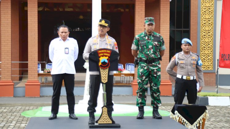 Apel dipimpin oleh PLT Sekda Kabupaten Pati Bp. Riyoso, didampingi Kapolresta Pati Kombes Pol Jaka Wahyudi dan Dandim 0718/Pati Letkol Arm Timotius Berlian Yogi Ananto. Seluruh peserta apel tampak khidmat dan penuh semangat kebersamaan.