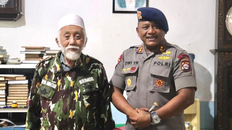 Pandeglang, RedaksiDaerah.com - Dalam rangka membangun sinergitas Polisional Dansat Brimob Polda Banten AKBP Dwi Yanto Nugroho, S.I.K didampingi Bripka Ervan si Intel satbrimob, Melakukan Kunjungan silaturahmi ke tokoh Ulama Banten, KH Abuya Dimyati, bertempat di pesantren roudotul ulum, Kampung Cidahu Desa Tanagara, Kecamatan Cadasari Pandeglang, Kabupaten Pandeglang, Banten, Rabu (18/03/20) pukul 10.00 WIB.