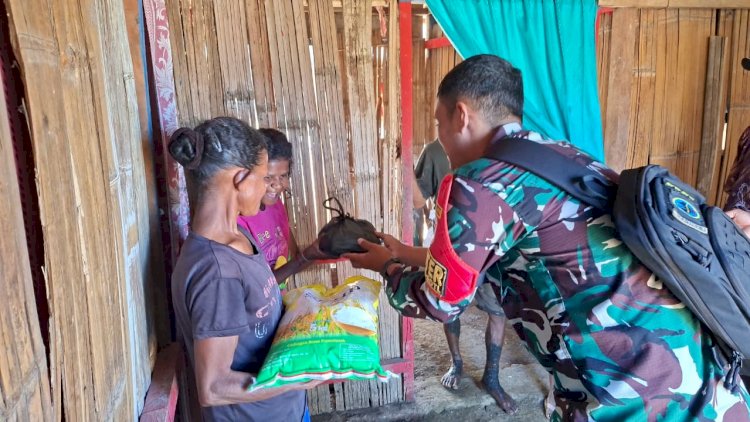 TTU, RedaksiDaerah.com - Prajurit Satgas Pamtas RI-RDTL Sektor Barat Yonarhanud 2 Kostrad melaksanakan kegiatan pembagian sembako bagi masyarakat yang membutuhkan di Desa Eban, Kecamatan Miomaffo Barat, Kabupaten Timor Tengah Utara, Jumat (10/10/2025).