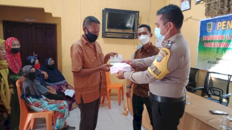 Kapolsek Tanah Putih Tanjung Melawan IPDA Al Hidayat mengatakan, Bhabinkamtibmas melaksanakan pengawasan pembagian BLT- DD pada warga yang terdampak dari wabah Covid-19.