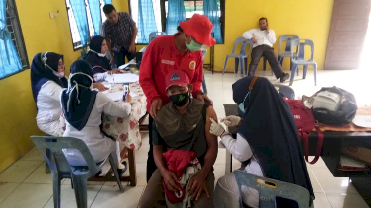 Peserta vaksinasi dikantor desa Ini kami Targetkan untuk masyarakat umum Lansia/ usia 60 tahun keatas Sekitar 200 Orang, dan Peserta yang terdaftar/terdata sekitar 53 orang, Ujar Ka Pos Bin Aceh Tamiang.