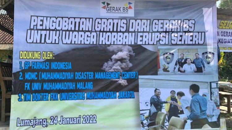 Pengobatan gratis diberikan oleh Gerakan Keadilan Bangun Solidaritas Indonesia (GERAK BS Indonesia) Peduli bersama Gakeslab DKI Jakarta dan Jawa Timur, Gabungan Perusahaan Farmasi Indonesia, Muhammadiyah Disaster Management Center, dan Tim Dokter Fakultas Kedokteran Universitas Muhammadiyah Jakarta. Dilakukan di Posko GERAK BS, di Kecamatan Pronojiwo, Lumajang, Jawa Timur.