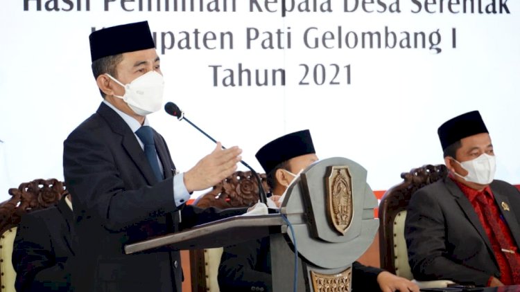 Pati-redaksidaerah.com pelantikan Kepala Desa Terpilih Pemilihan Kepala Desa (Pilkades) Serentak 2021 se-Kabupaten Pati, berlanjut hari ini (24/5) di Pendopo Kabupaten Pati.