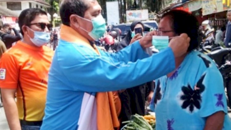 Karo-Sumut,Redaksidaerah.com,.. Kurangnya kesadaran para pelaku wisata mematuhi protokol kesehatan di sekitar lokasi wisata Taman Mejuah- juah Berastagi Kabupaten Karo Sumatera Utara, sempat membuat kecewa Bupati Karo Terkelin Brahmana, SH, MH. Kekecewaan Bupati Karo ini terlihat saat memonitoring pembagian masker serta meninjau langsung aktivitas pariwisata dalam persiapan menuju New Normal, bersama Ketua DPRD Karo Iriani Tarigan dan didampingi Kadis Pariwisata Kab.Karo Munarta Ginting di Berastagi Kab. Karo, Minggu 19Juli 2020.