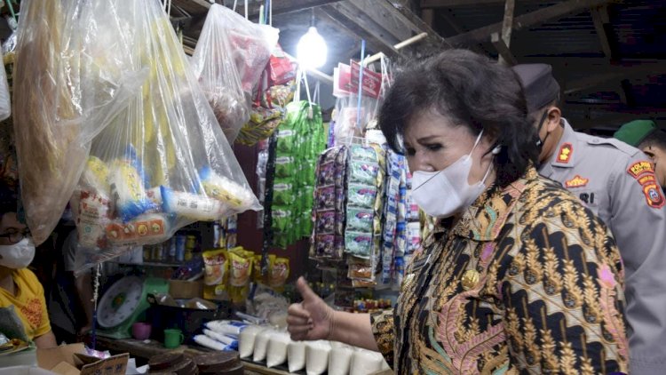 Bupati Karo Cory Sebayang bersama Wakil Bupati Karo, Theopilus Ginting, Kapolres Karo, AKBP Ronny Nicholas Sidabutar, SH, S.I.K, MH dan Dandim 0205/TK Letkol. Inf Benny Angga Ambar Suoro melakukan sidak minyak goreng di Pusat Pasar Kabanjahe.