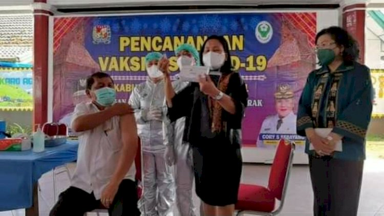 Setelah Vaksin sampai di Kabupaten Karo, beberapa hari yang lewat, maka hari ini, Kamis, (04/02/2021) sekitar pukul 10.34 Wib, Bupati Karo Terkelin Brahmana, SH.MH adalah penerima suntikan Vaksinasi Covid19 pertama, bertempat di Jambur Pemkab Karo, Jalan Veteran, Kelurahan Kampung Dalam, Kecamatan Kabanjahe, Kabupaten Karo, Sumatera Utara.