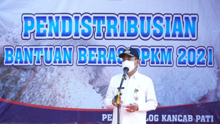 Pendistribusian 960,128 ton beras kepada masyarakat kurang mampu terdampak kebijakanan PPKM pandemi Covid-19 ini tersebar di 21 kecamatan di Kabupaten Pati.