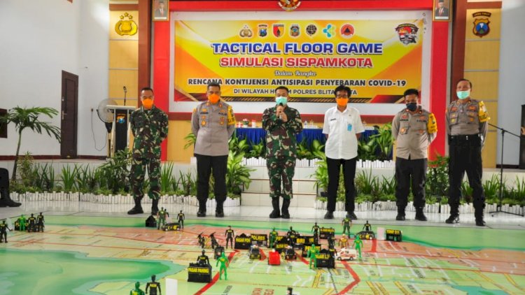 Dandim 0808/Blitar Letkol Inf Kris Bianto, SE saat ditemui mengatakan, kegiatan Tactical Floor Game (TFG) ini digelar dalam rangka Simpamkota terkait penanganan Covid-19 yang ada di Wilayah Kota Blitar dengan maksud dan tujuan untuk menyamakan persepsi bagaimana cara bertindak anggota dilapangan terkait penanganan antisipasi dan upaya penanggulangan penyebaran Covid-19 khususnya di wilayah Kota Blitar.