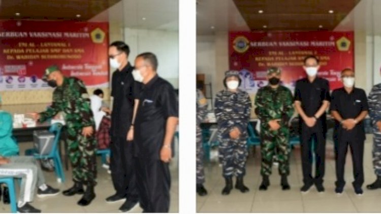 Hadir dalam peninjauan kegiatan vaksinasi yang dilaksanakan di Aula SMA Dr.Wahidin Sudirohusodo Kepala sekolah yang mendampingi Aspotmar dan Panban Spotmar Lantamal I guna memastikan proses pelaksanaan vaksin berjalan dengan aman. Untuk mendukung pelaksanaan kegiatan vaksinasi disiapkan tenaga kesehatan sebagai vaksinator sebanyak 2 Tim, 1 Tim dari Dinas Kesehatan Lantamal I, 1 Tim dari RSAL Komangmakes.