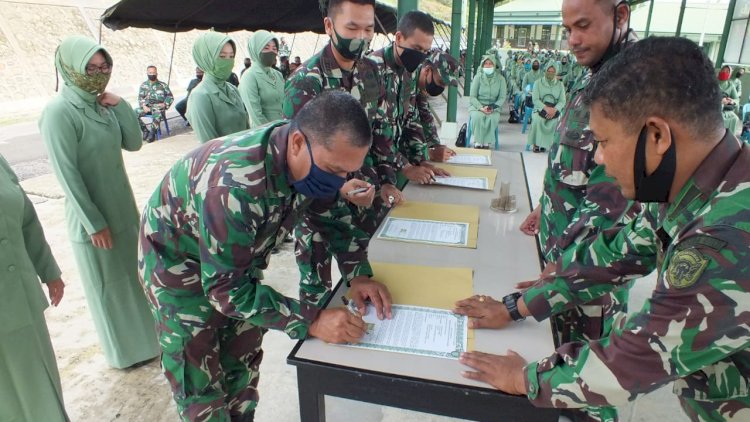 Dan di lanjutkan penandataganan Pakta Integritas Bebas Dari Penyalahgunaan Media Sosial oleh seluruh Anggota Prajurt TNI, PNS dan Persit KCK Cab. XXIV Kodim 0117/Atam.
