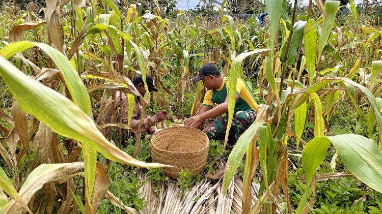 Suasana kebersamaan tampak jelas saat personel Pos Motamasin bersama warga turun langsung ke lahan pertanian. Dengan penuh semangat, mereka bahu-membahu memanen jagung yang telah memasuki masa panen, sekaligus mempererat hubungan harmonis antara TNI dan masyarakat setempat.