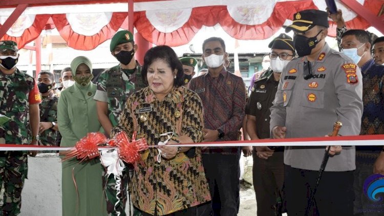 Bupati Karo Cory S Sebayang bersama Wakil Bupati Karo Theopilus Ginting hadir dalam acara Peresmian Kampung Pancasila Desa Gurusinga, yang dilaksanakan di Jambur Desa Gurusinga, Kecamatan Berastagi pada Jumat (18/03/2022).