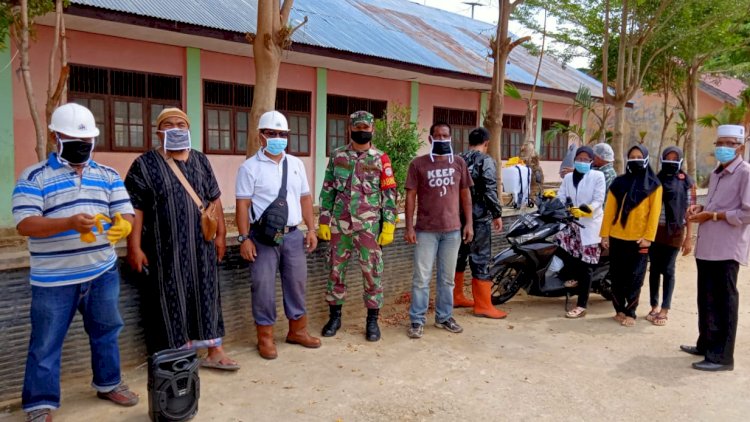 Aceh Tamiang |Aceh| - Dalam Pencegahan Covid-19 Kades (Datok) Desa Perdamaian Rifwan bersama perangkat Desa serta Bidan Desa dan Babinsa melakukan penyemprotan Disinfektan ke rumah warga dan tempat-tempat umum serta tempat-tempat yang dianggap rawan di Pesa Perdamaian, Kabupaten Aceh Tamiang, Aceh, Jum'at (20/04/20).