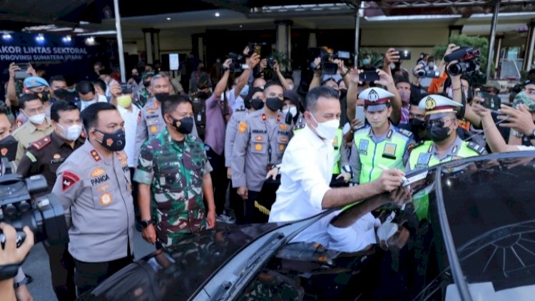 Pada kesempatan itu, Wakil Gubernur Sumut, Musa Rajekshah, turut menempelkan stiker di salah satu mobil sebagai tanda bisa melintas dalam gelaran simulasi tersebut. Wagubsu mengatakan, simulasi yang digelar dalam persiapan menghadapi datangannya masyarakat baik dari luar kota maupun dari daerah saat Natal dan Tahun Baru (Nataru) 2022.