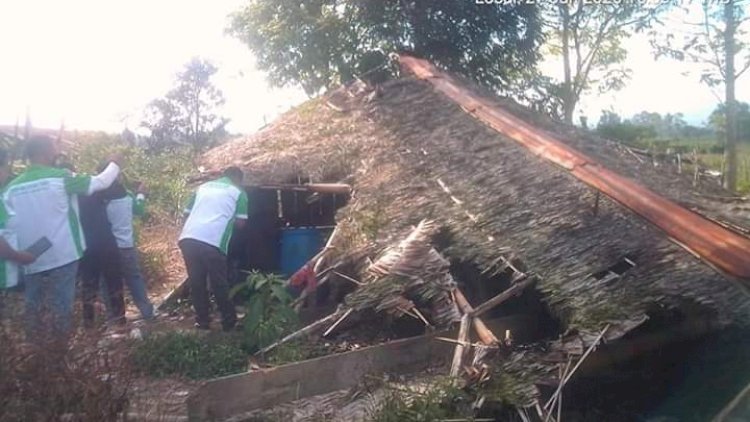 KARO (SUMBAR) - DPD Walantara Karo yang diketuai Daris Kaban berkunjung kekediaman Betesda Ginting, warga Desa Lingga Julu,Kec.Simpang Empat, Kab.Karo yang tinggal di gubuk reot Kondisi gubuk tersebut tanpa dinding dan tanpa atap,
