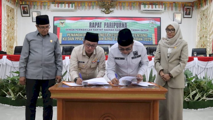Tanah Datar — RedaksiDaerah.com,— Kamis (14/8/2025) menjadi momen penting bagi arah pembangunan Kabupaten Tanah Datar. DPRD dan Pemerintah Daerah secara resmi menandatangani Nota Kesepakatan Kebijakan Umum dan Prioritas Plafon Anggaran Sementara (KUA-PPAS) Perubahan APBD Tahun Anggaran 2025 dalam rapat paripurna di gedung DPRD.