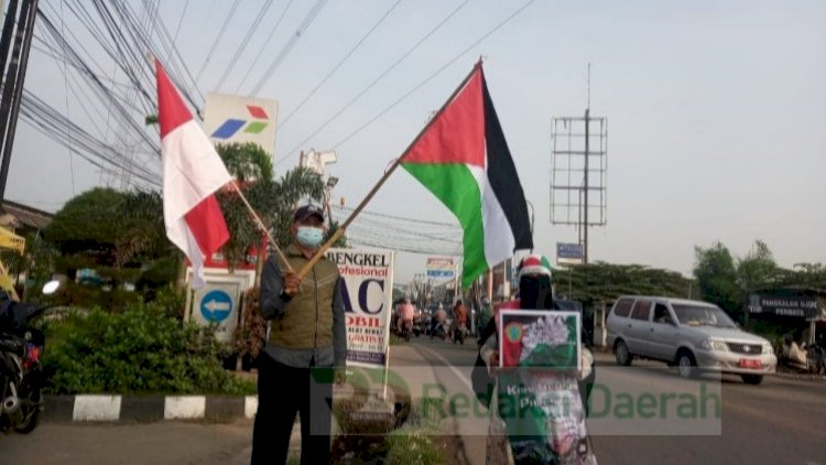 Bekasi, RedaksiDaerah.com - Sejumlah Pengurus dan anggota Yayasan Humanity Disaster Relief Indonesia menggelar aksi penggalangan dana kemanusiaan untuk warga Palestina di Jalan Raya Lingkar Utara, Bekasi Utara, Kota Bekasi, Jawa Barat, Minggu (23/05/21).