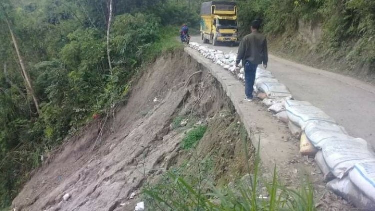 Akibat Curah hujan yang sering terjadi belakangan ini, bahu jalan menuju beberapa desa tepatnya di Desa Kuta Mbelin, Kecamatan Lau Baleng,Kabupaten Karo,Sumatera Utara Longsor, melihat kecuraman longsor yang ada ini diprediksi dapat mengancam pengguna jalan,baik Mobil maupun sepeda motor atau juga warga sekitar yang melintas dilokasi longsor.