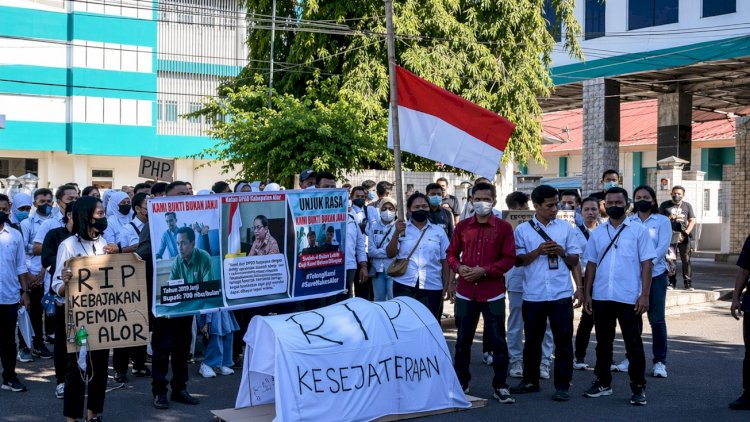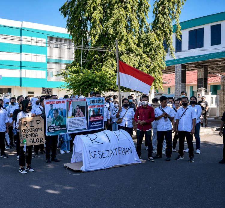 Alor — Puncak kekecewaan akhirnya meledak. Hari ini, Senin, 13 April 2020, ratusan tenaga kesehatan (nakes) paruh waktu di Kabupaten Alor turun ke jalan melakukan unjuk rasa. Mereka menyuarakan protes keras terhadap kebijakan pemerintah daerah yang dinilai tidak manusiawi dan jauh dari rasa keadilan.