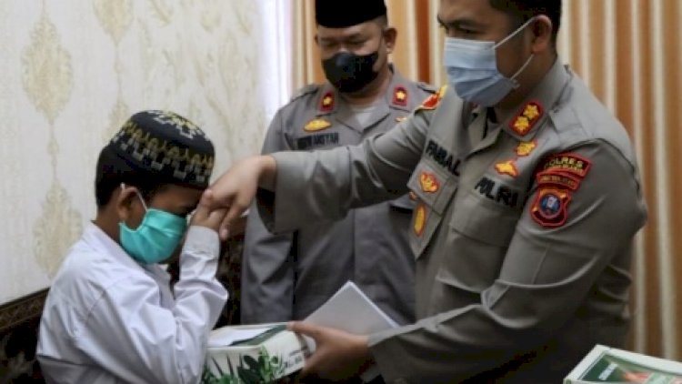 Pemberian santunan kepada anak yatim tersebut diserahkan langsung oleh Kapolres Pelabuhan Belawan.
