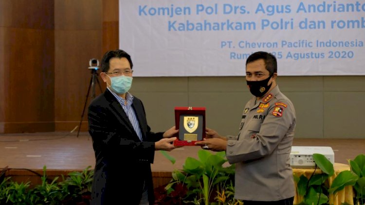 Pekanbaru |Riau| - Kepala Badan Pemelihara Keamanan (Kabaharkam) Polri, Komjen Pol Drs Agus Andrianto, SH, MH melakukan supervisi program Pemulihan Ekonomi Nasional (PEN) di PT. Chevron Pasifik Indonesia (CPI) di Kecamatan Rumbai, Pekanbaru, Riau, Selasa siang (25/08/20).