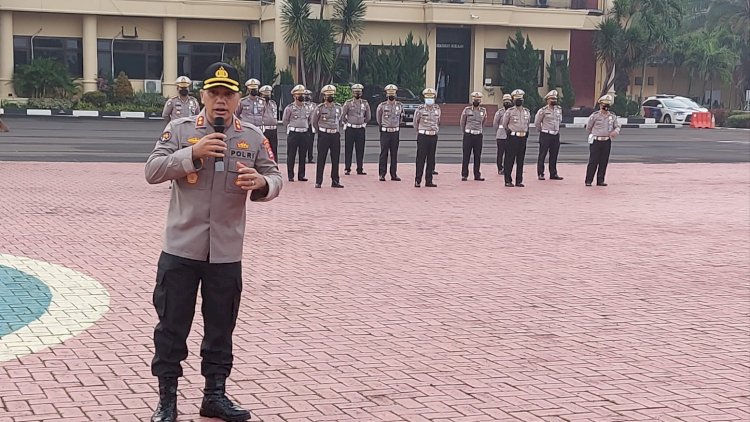 Serang, RedaksiDaerah.com - Personel Direktorat Lalu Lintas Polda Banten menerima arahan Kabidhumas Polda Banten tentang Kode Etik Jurnalistik kepada personel Ditlantas di Lapangan apel Polda Banten, Rabu (22/12/21).