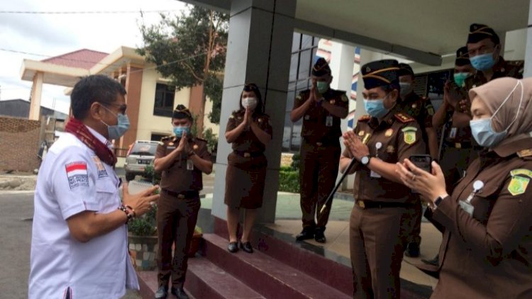 Kunjungan kerja reses Anggota Komisi III DPR RI, Hinca Panjaitan, SH.MH saat tiba di Tanah Karo disambut langsung oleh Kajari Karo,Denny Achmad,SH.MH beserta para Seksi,Jaksa dan Jaksa Fungsional,berikut para staf Kejaksaan,bertempat di Aula Kantor Kejaksaan Negeri Kabupaten Karo, Senin 12 Oktober 2020.