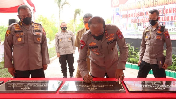 Palangka Raya, RedaksiDaerah.com - Kepala Kepolisian Daerah (Kapolda) Kalteng, Irjen Pol Drs Nanang Avianto, M.Si meresmikan Rumah Susun (Rusun), kantor dan Rumah Dinas Polda Kalteng yang berada di Komplek Polsek Jekan Raya, Jl. Mahir Mahar, Kelurahan Bukit Tunggal, Kecamatan Jekan Raya, Kota Palangka Raya, Kalimantan Tengah, Senin (20/12/21).