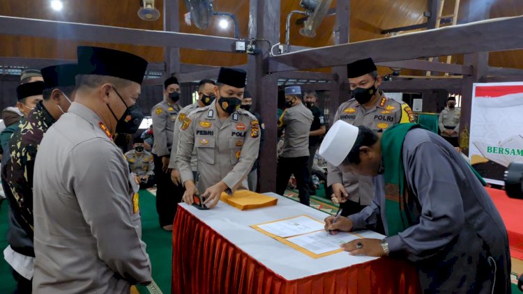 Berikutnya dilaksanakan Penandatanganan MoU antara Kapolres se-Jajaran Polda Riau dengan Pimpinan Cabang NU se-Provinsi Riau yang disaksikan oleh Kapolda Riau. MoU ini adalah kerjasama dalam rangka kegiatan pembinaan personel khususnya kegiatan dakwah kajian kitab kuning bagi personel yang muslim.