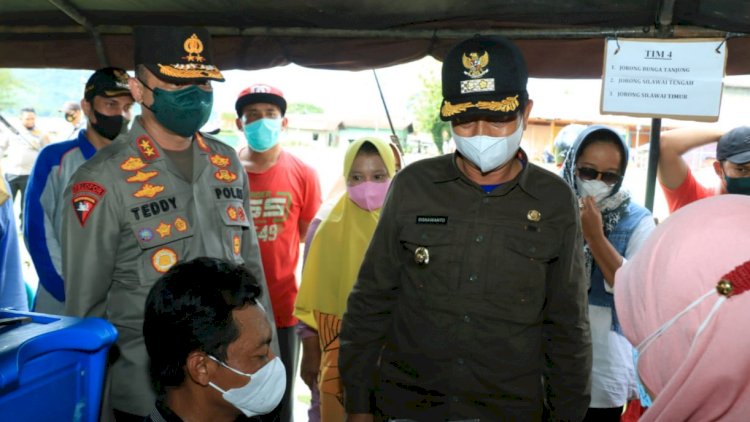 Awalnya, Kapolda Sumbar meninjau gebyar Sumbar Sadar Vaksin yang berlangsung di halaman kantor Bupati Pasaman Barat.
