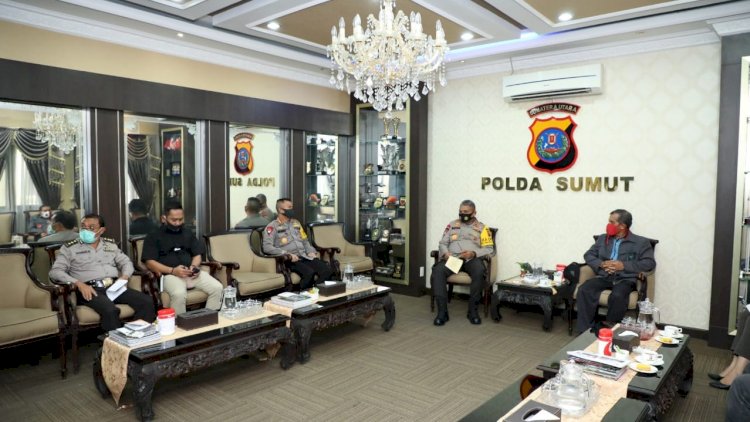 Medan |Sumut| - Kapolda Sumut Irjen Pol. Drs. Martuani Sormin, M.Si silaturahmi dan audiensi dengan Forum Koordinasi Pencegahan Terorisme (FKPT) Sumut bertempat di ruang perjamuan Mapolda Sumut, Kamis (06/08/20).