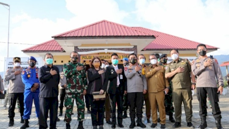 Kapolda Sumut, Irjen Pol RZ Panca Putra Simanjuntak, dalam kunjungan kerjanya meresmikan Kantor Pos Polisi Pariwisata Direktorat Pengamanan Objek Vital (Ditpamobvit) di Desa Pardomuan, Kecamatan Ajibata Kabupaten Simalungun, Senin (12/4/21).