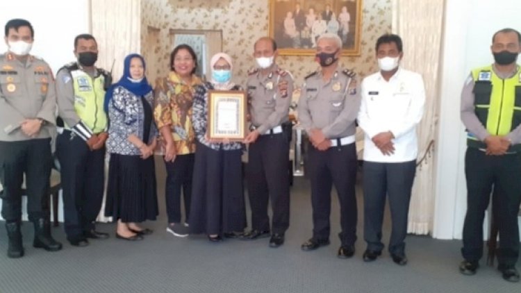 Kapolres Binjai *AKBP Ferio Sano Ginting S.I.K, MH* menyerahkan Piagam Penghargaan dari Kakorlantas Polri Irjen POL Drs Istiono MH kepada Walikota Binjai Drs H. Amir Hamza MAP atas prestasi sebagai Juara 2 pada perlombaan Keselamatan Berlalulintas tingkat Sekolah Dasar yang diadakan oleh Koorlantas Polri pada Hari Lalulintas Bhayangkara ke 66 Tahun 2021.