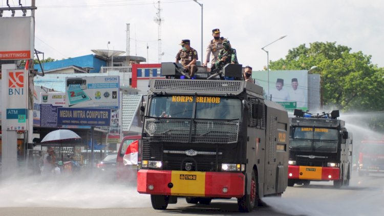 Kegiatan penyemprotan ini langsung dipimpin oleh Kapolres Bukittinggi AKBP Iman Pribadi Santoso, SIK, MH dan Dandim 0304/Agam Letkol Inf. Victor Andhika Tjokro, SIP.