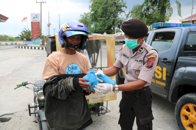Deli Serdang |Sumut| - Kepolisian Resort Kota Deli Serdang (Polresta Deli Serdang) melaksanakan kegiatan berbagi kasih dengan membagikan Nasi Bungkus kepada orang yang kurang mampu di Lubuk Pakam dan Tanjung Morawa, Deli Serdang, Sumatera Utara, Selasa (07/04/20) siang pukul 14.00 WIB.