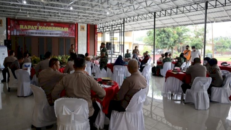 Kapolresta Deli Serdang Kombes Pol Yemi Mandagi SIK SH. MH menggelar Rapat kordinasi Percepat Vaksinasi dan sinkronisasi data Vaksin Kabupaten Deli Serdang Sumatera Utara. Just (17/12/2021) pagi di Aula terbuka Mako Polresta Deli Serdang.