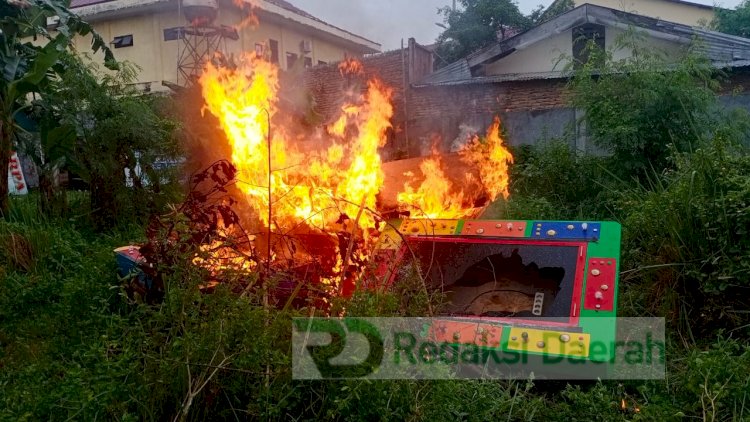 Medan, RedaksiDaerah.com - Kapolsek Medan Sunggal, Kompol Yasir Ahmadi, SH, SIK, MH usai melakukan Konprensi Pers tentang keberhasilan pengungkapan kasus penganiayaan dan pencurian dengan pemberatan di dalam rumah, selanjutnya Kapolsek Medan Sungga,l Kompol Yasir Ahmadi, SH, SIK, MH didampingi Kanit Reskrim, AKP Budiman Simanjuntak, SE, MH dan Panit Reskrim IPTU M. Sofi, SH selanjutnya melakukan pemusnahan barang temuan hasil tangkapan Tekab Polsek Medan Sunggal berupa 10 (sepuluh) unit mesin permainan judi dengan cara menyiram minyak kemudian dibakar hingga habis seluruhnya.