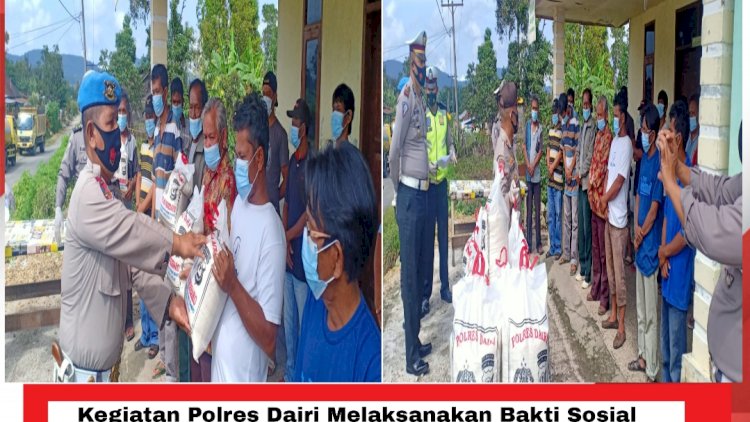 Polres Dairi memberikan bantuan sembako dan masker kepada masyarakat terdampak Covid-19 di Dusun Bintang Permasen, Desa Bintang Mersada, Sabtu, 29 Agustus 2020.
