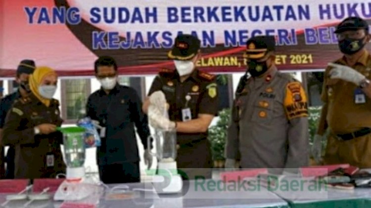 Kepala Kejari Belawan, Ikeu Bachtiar, SH, MH mengatakan, berbagai jenis barang yang dimusnahkan tersebut merupakan barang bukti dari 763 perkara, sejak tahun 2017 hingga tahun 2020 dengan rincian tindak pidana khusus/kepabeanan sebanyak 2 perkara, tindak pidana umum 761 perkara, terdiri dari 666 perkara Narkotika dan zat adiktif lainnya, 59 perkara tindak pidana terhadap orang dan harta benda serta 36 perkara tindak pidana terhadap keamanan negara dan ketertiban umum.