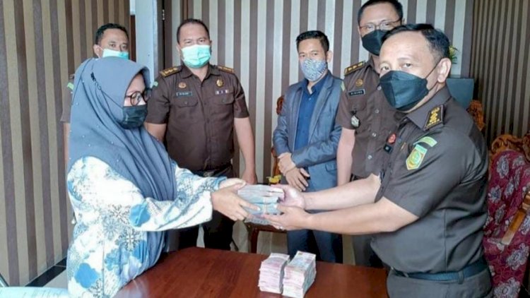 Selain mengembalikan uang negara, Kades Larangan Slampar, Kecamatan Tlanakan, Kabupaten Pamekasan itu juga menjadi tahanan Kejaksaan sejak tanggal 30 Desember 2021.
