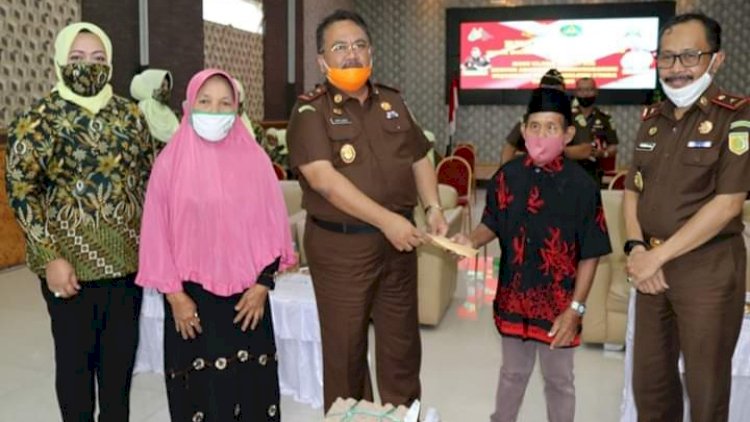 Kejati Malut menyerahkan paket bantuan sosial sebanyak 500 paket, kemudian secara serentak diikuti oleh Kejari se Provinsi Malut.