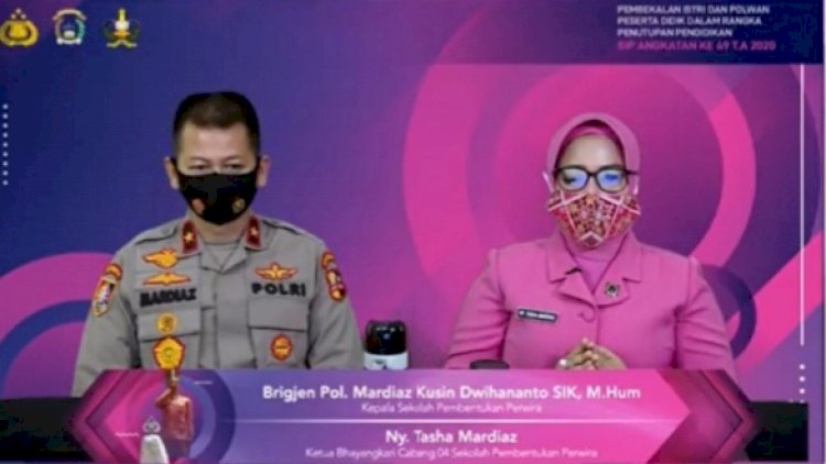 Bandung |Jabar| - Pengurus Cabang Bayangkari 04 Setukpa menyelenggarakan giat pembekalan istri dan Polwan peserta didik dalam rangka Penutupan Pendidikan SIP Angkatan ke-49 TA 2020 secara virtual melalui zoom meeting, Jum'at (25/09/20).