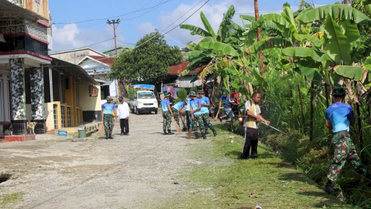 Personel Satgas Pamtas beserta seluruh elemen masyarakat bahu-membahu melaksanakan karya bakti pembersihan jalan desa. Fokus utama Karya Bakti ini adalah pemotongan rumput dan penertiban semak belukar yang tumbuh di kanan dan kiri bahu jalan. Kondisi jalan yang bersih dan terawat sangat vital untuk kelancaran mobilitas warga, terutama yang akan menuju Pasar Eban Lama.