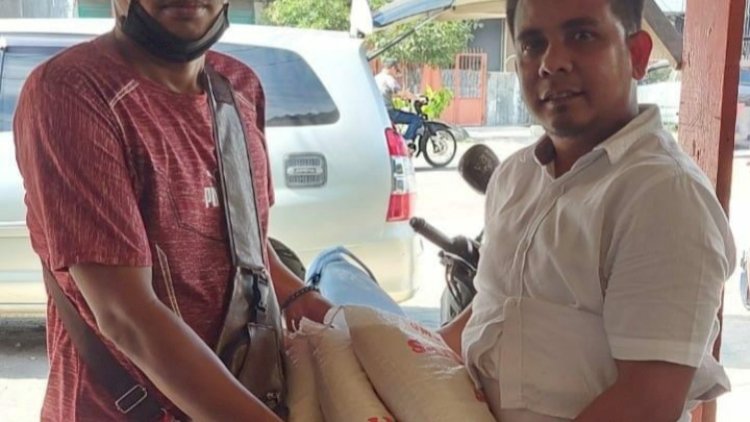 Para wartawan yang mendapat bantuan masing-masing wartawan Unit DPRD Medan 40 goni beras, wartawan Medan Utara 40 goni, Pewarta 25 goni dan FJPI 50 goni.