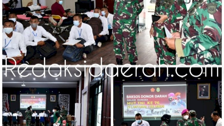 Redaksidaerah.com, Belawan TNI Angkatan Laut Lantamal I melaksanakan kegiatan donor darah dengan tema” Baksos Donor Darah Dalam Rangka HUT TNI ke -76” bertempat di Gedung Yos Sudarso Mako Lantamal I Belawan, Senin 13/09/2021. Baru saja merayakan hari jadi (HUT) TNI Angkatan Laut yang ke-76 Lantamal I Belawan dibawah Komando Utama Laksamana Pertama TNI Achmad Wibisono terus bekerja keras untuk merealisasikan selogan Indonesia tangguh, Indonesia tumbuh dengan melaksanakan kegiatan donor darah di Gedung Yos Sudarso Mako Lantamal I Belawan. Hal ini merupakan rangkaian kegiatan dari perayaan hari ulang tahun (HUT) TNI ke-76 yang jatuh pada tanggal 05 oktober 2021 Kegiatan donor darah kali ini diikuti oleh Prajurit dan PNS Lantamal I dengan semangat Indonesia tangguh dan Indonesia tumbuh serta menyambut kemeriahan Ulang Tahun TNI di masa pandemi Covid-19 diharapkan semangat dan nilai-nilai luhur TNI bisa menginspirasi seluruh masyarakat agar kuat dan tumbuh secara optimal dalam menghadapi pandemi Covid-19. Baksos donor darah ini ditinjau langsung oleh Wadan Lantamal I Belawan Kolonel Mar. Amir Kasman didampingi Kadiskes Lantamal I Belawan Letkol laut (K/W) drg. Yeti Trianti, Sp.Ort guna memastikan kegiatan tersebut berjalan dengan baik dan lancar. Adapun kegiatan ini dilaksanakan oleh Diskes Lantamal I bekerjasama dengan Unit Transfusi darah Rs. Adam Malik Kota Medan dengan mengikuti protokol kesehatan yang ketat.